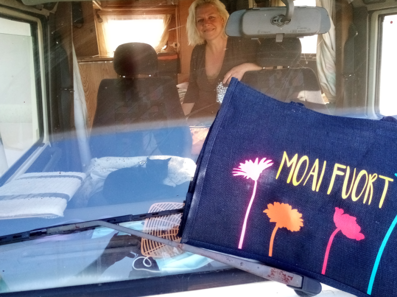 Nergens een winkel, caravan dealer in de buurt. Ook Google-maps stuurde ons naar een bedrijf die ons niet kon helpen. Dus toch maar doorrijden en redden met middelen die we hebben.