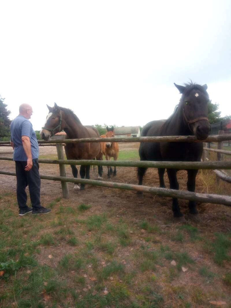 Aangekomen in Iggensbach, Duitsland. Fijne douche en mooie omgeving en paarden naast de camperplaats. Dobra vond dit maar niks.