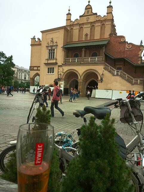 'S middags met de fietsjes door het centrum van deze mooie stad gereden. Op een horeca-boot op de rivier de Wisła koffie gedronken en weer terug gefietst naar het centrum. Hier een biertje gedronken en genoten van de sfeer. Vanuit het centrum zijn we naar "Dutchpoint-Krakau" gegaan voor een drankje.